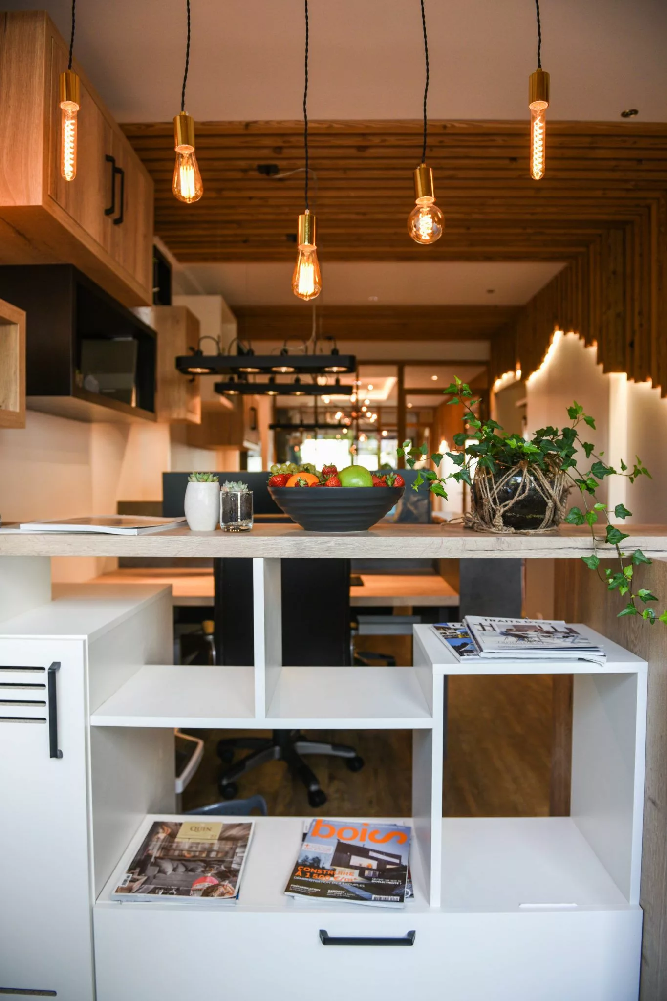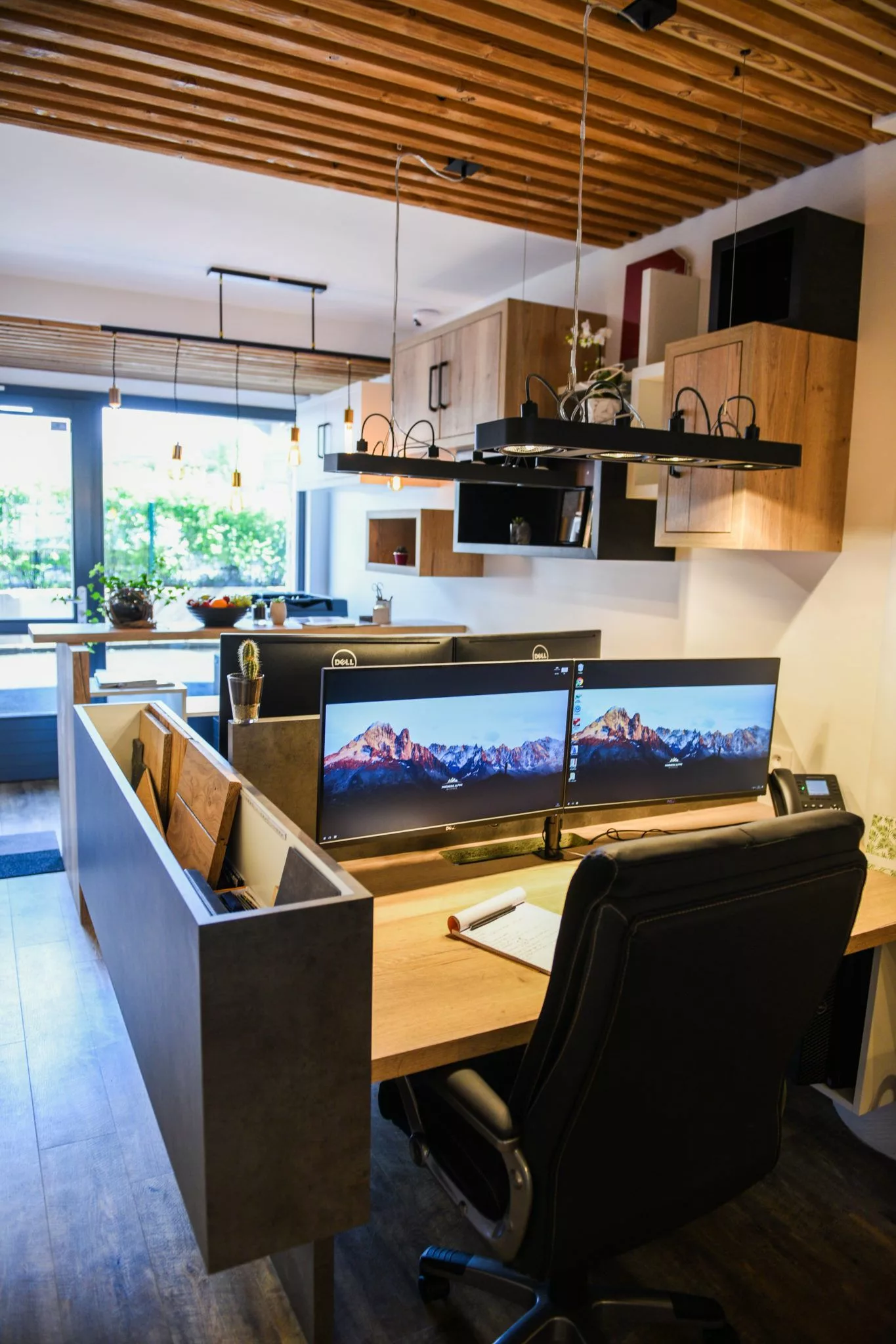 The Mont-Blanc mountain range runs the length of the office. Combining wood and modernity, we've created this warm setting to welcome you into our world.